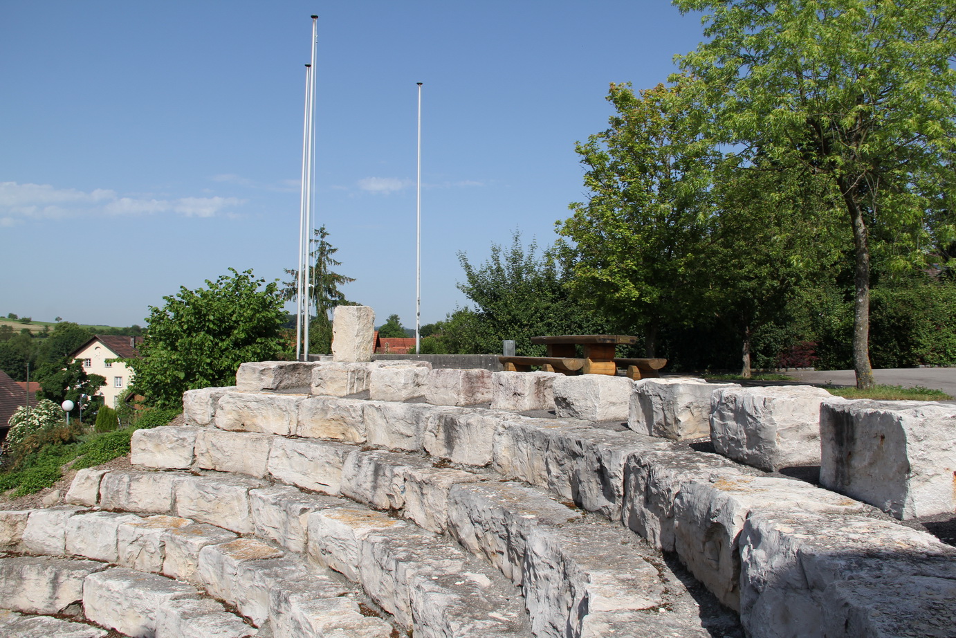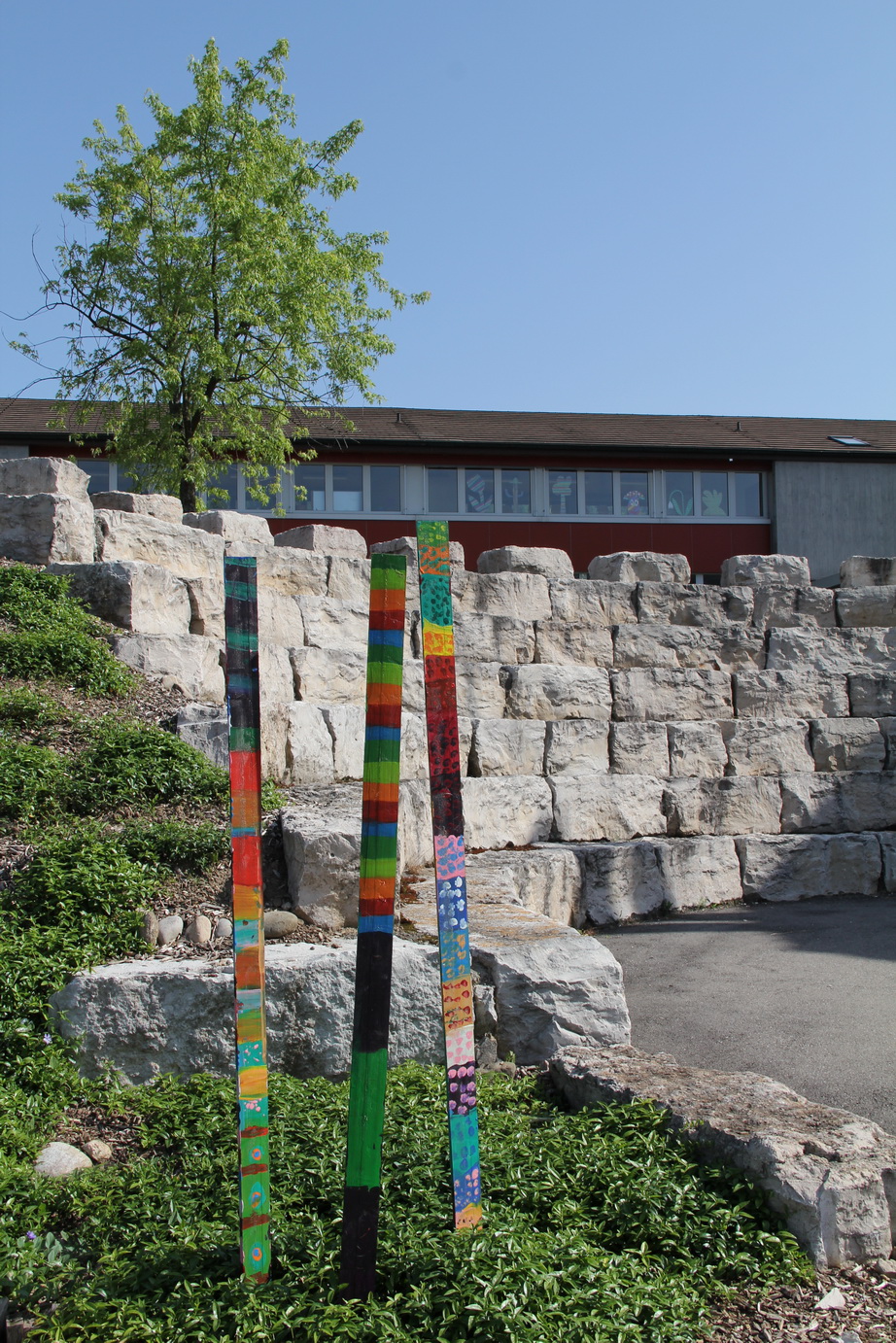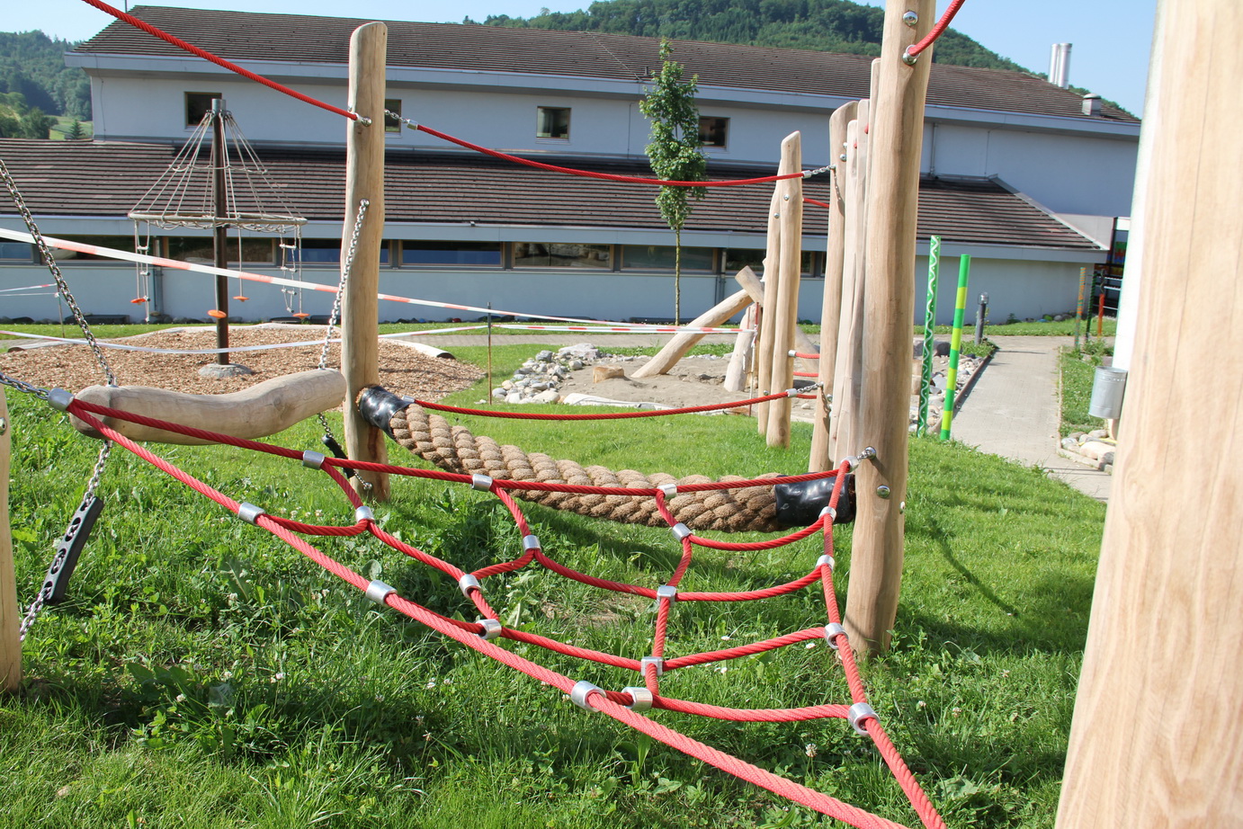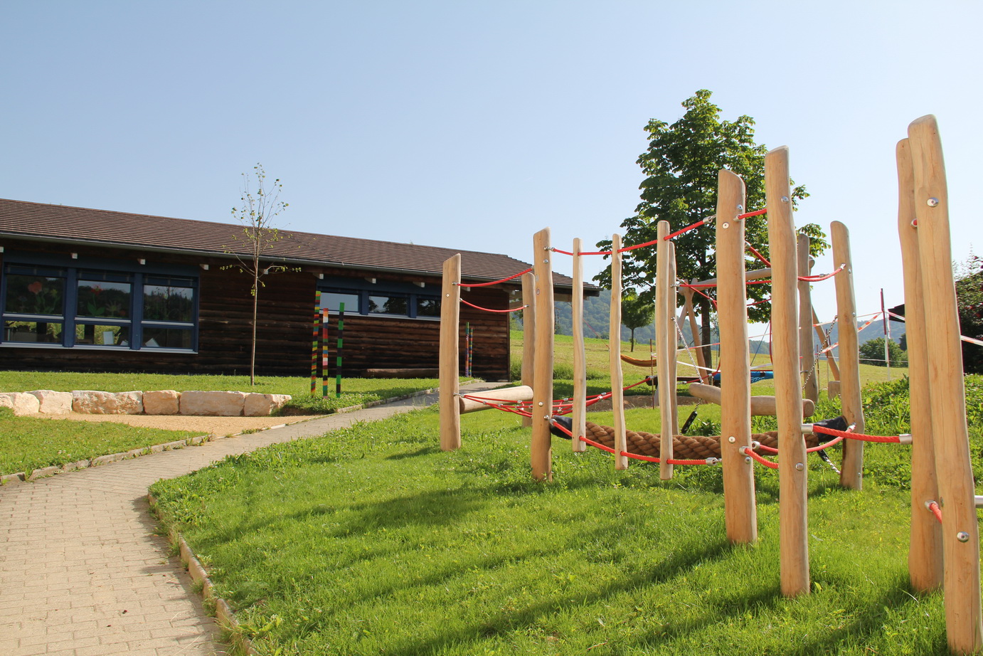 Das Schulhaus und der in unmittelbarer Nähe angesiedelte Kindergartenpavillion, befinden sich mitten im Dorf und verfügen über ein einladendes Pausenplatzareal mit Spielplatz und eine grosszügigen Aussensportanlage.